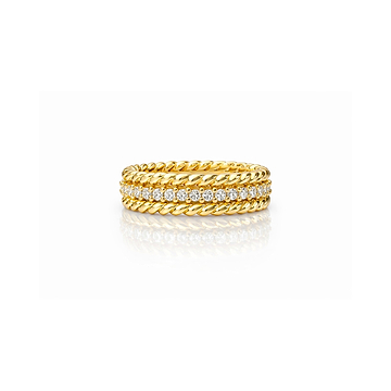 The rope-inspired detailing frames the diamonds with softness and structure, giving the ring depth while...