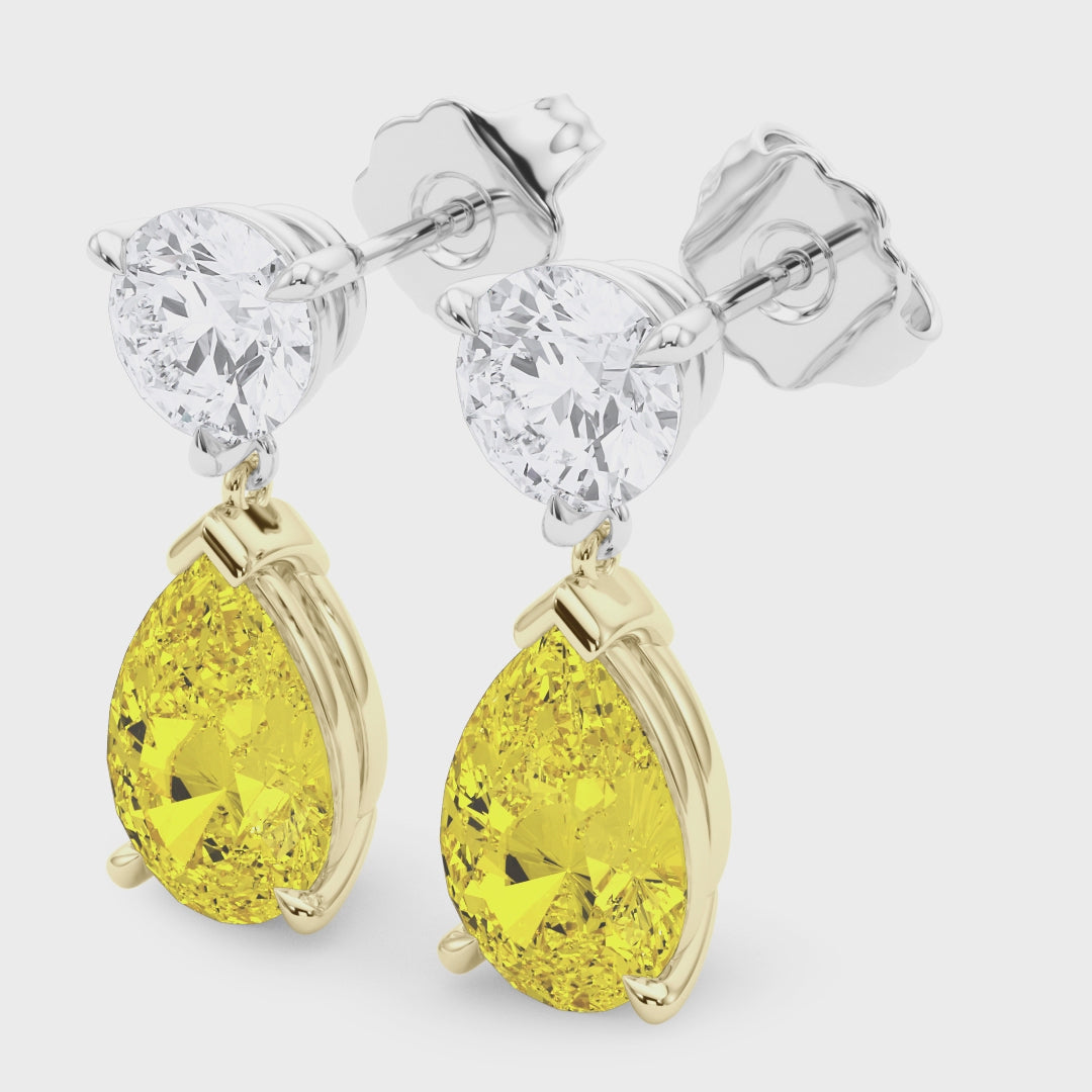 White Round lab grown Diamond with Yellow Pear Drop Earrings